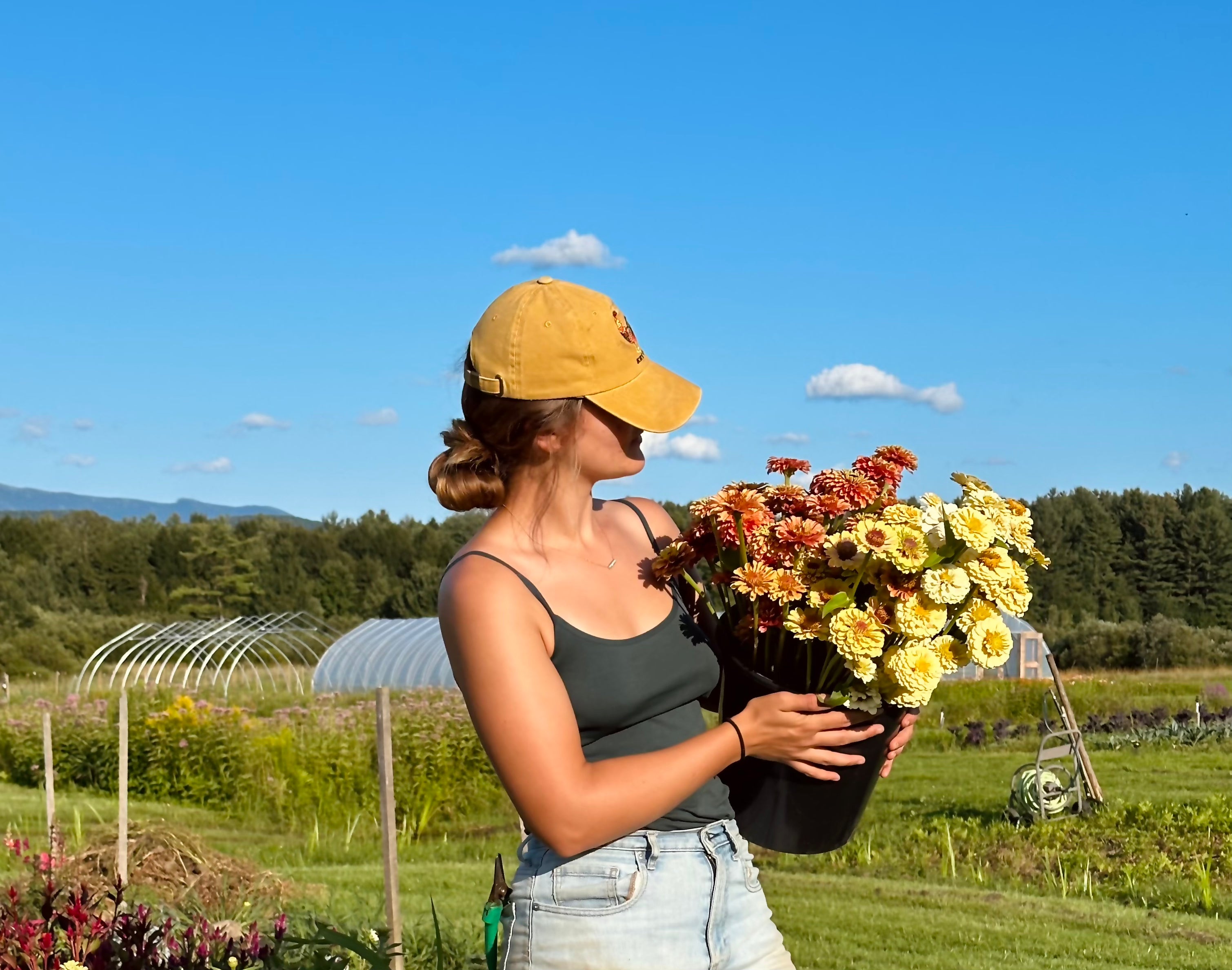 Flowers: Our fields bloom from June through September with an abundance of seasonal, organically grown flowers. Our flowers are always pesticide and herbicide free. Buying local flowers supports pollinator habitat in your community and reduces the reliance on imported blooms. You can find our flowers in thoughtfully curated bouquets sold at the O.N.E. Farmer’s Market, or purchase them wholesale in buckets, perfect for DIY weddings, events, floral designers, or simply bringing joy into your own space.